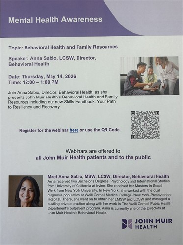 Please be sure to check out the next John Muir Health May webinar on mental health awareness.