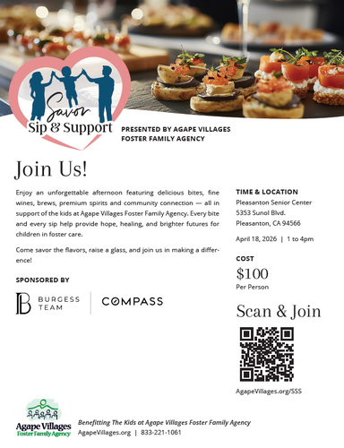 Enjoy an unforgettable afternoon featuring delicious bites, fine wines, brews, premium spirits and community connection — all in support of the kids at Agape Villages Foster Family Agency. Every bite